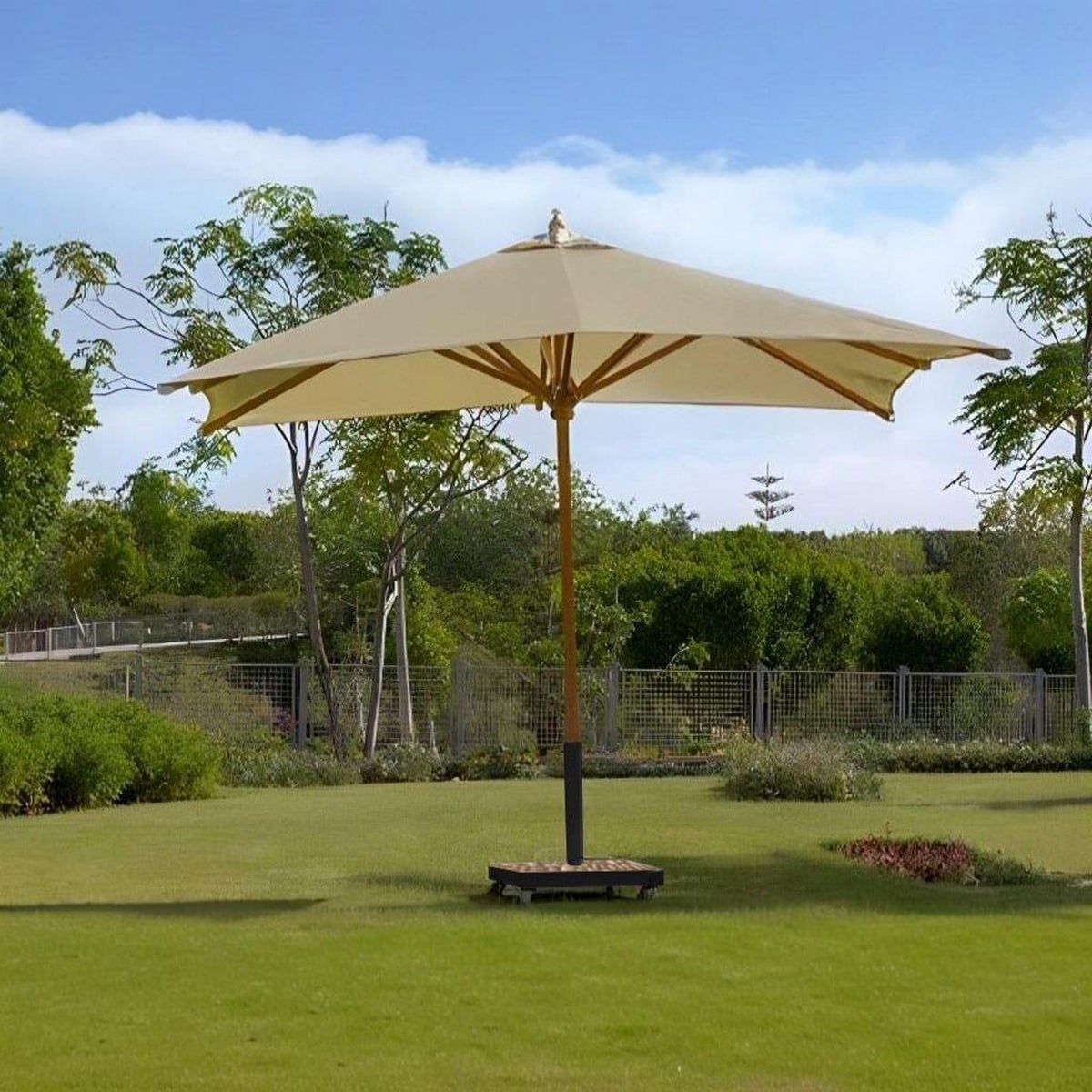 تعرف على شمسية بحر خشب زان بمقاس 3×3 متر ولون بيج أنيق، من أفضل حلول الظل ضمن مجموعة شماسي حدائق عالية الجودة.