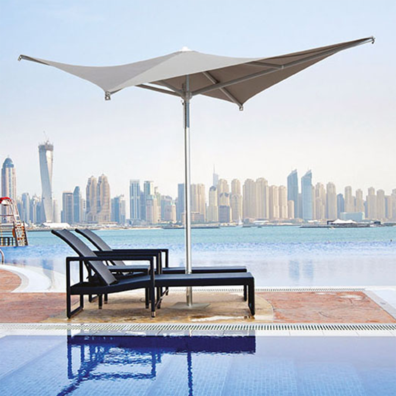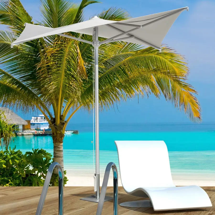 تأتي الشمسية بتصميم عملي ومودرن يعتمد على عمود وسطي معدني بمقاس 50 مم، مع ميكانيزم معدن 4 زراع و4 زراع داعم لثبات أعلى. تتوفر بعدة ألوان للقماش والهيكل، بما يتيح تناسقًا مثاليًا مع مختلف المساحات الخارجية والديكورات.