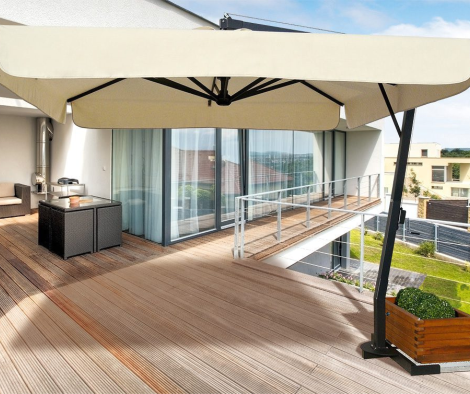 إذا كنت تبحث عن شمسيات حدائق تجمع بين الأناقة والعملية، فشمسيّة كانتليفر 3.5×3.5 من zillal هي الخيار الأمثل. تصميم جانبي عملي يوفر مساحة ظل واسعة بدون عمود مركزي، لتلبية احتياجات الحدائق، الكافيهات، حمامات السباحة والفنادق بطريقة سهلة وآمنة.