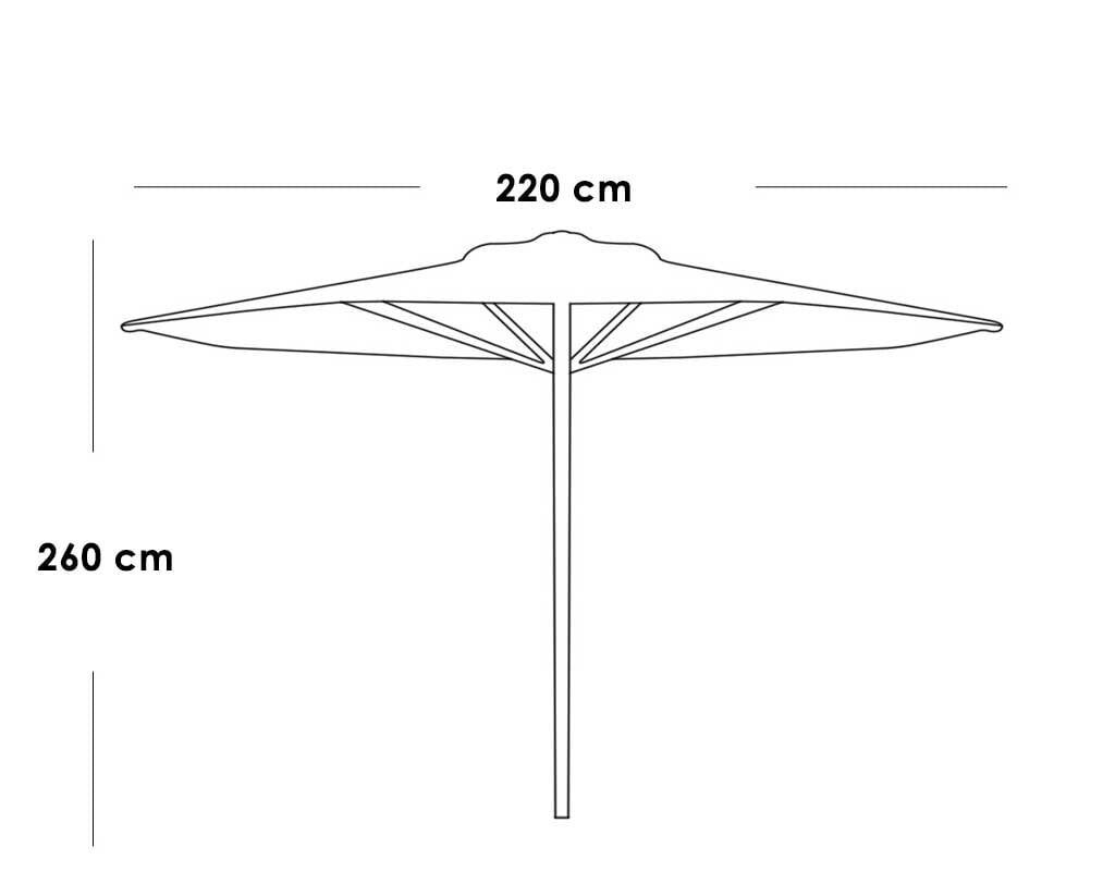 مصنوعة من خشب زان روماني عالي الجودة المعروف بصلابته ومقاومته للعوامل الجوية، مع قاعدة رخام ثقيلة تمنح ثباتًا ممتازًا. القماش من HDPE كلارو المستورد، مقاوم لأشعة الشمس والحرارة، ويحافظ على لونه وجودته مع الاستخدام الطويل.